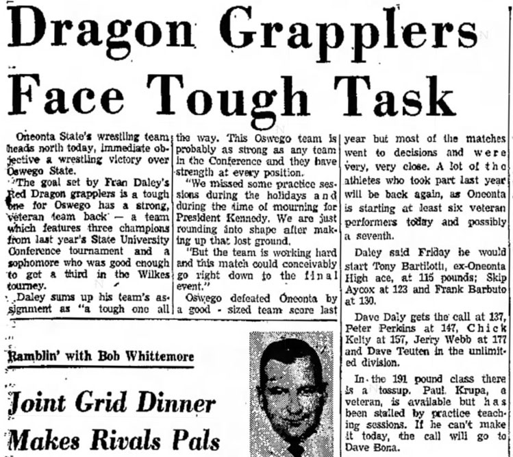 Chick Kelty (Oneonta) > C. Richardson (Oswego) fall