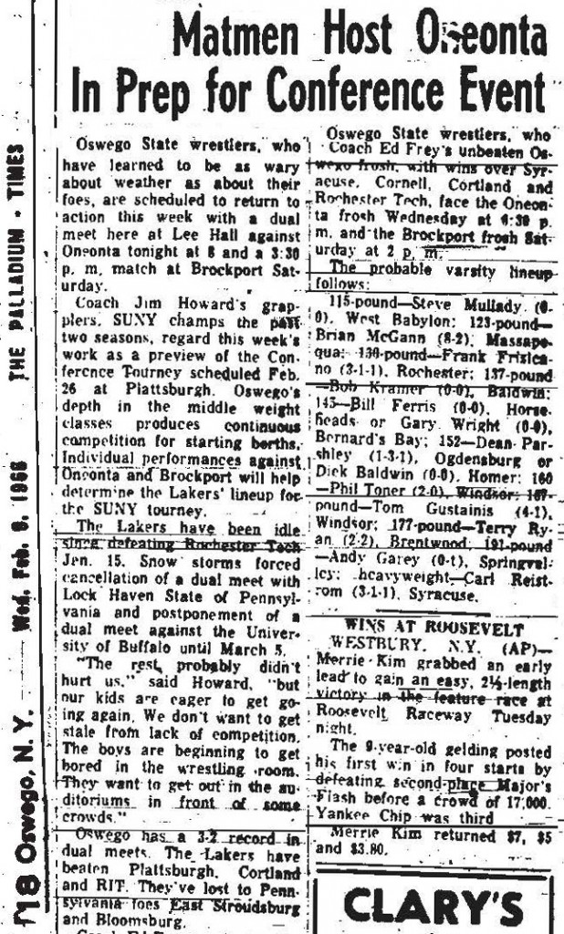 Ernie Muserallo (Oneonta) > Steve Mullady (Oswego) fall 5:34