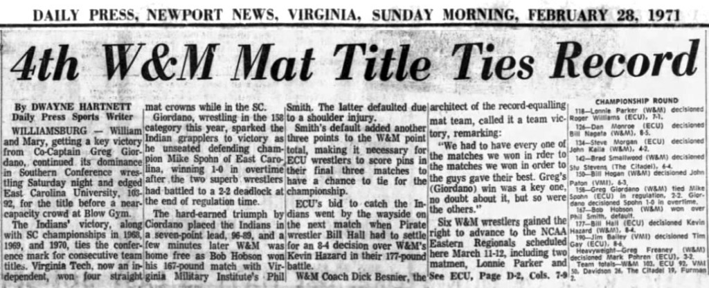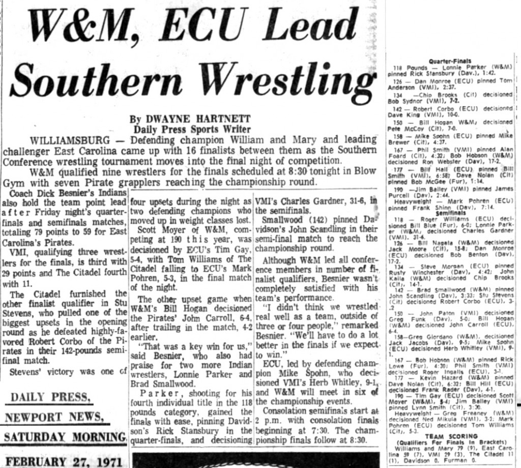 Jim Bailey (VMI) > Tim Gay (ECU) decision 8-6