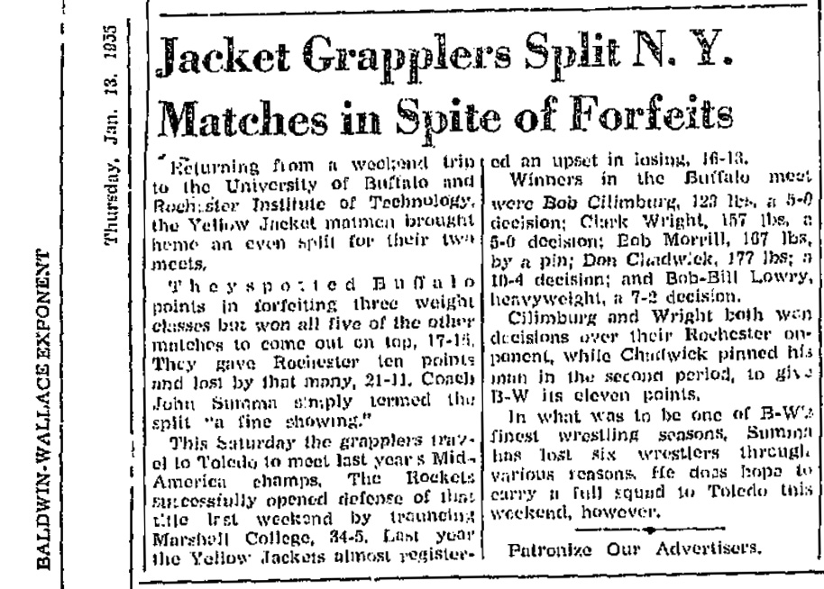 Bob Cilimburg (BWU) > Don Miller (UB) decision 5-0