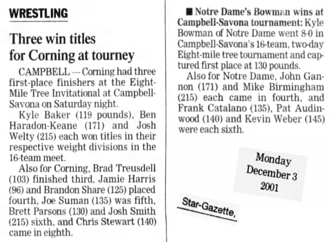 Kyle Baker (Corning) > Jason Nagy (Irondequoit) decision 10-4