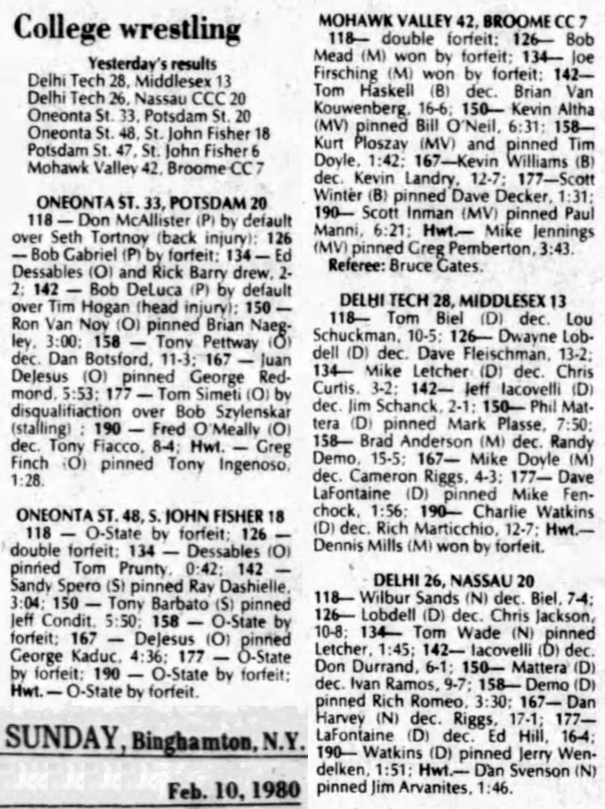 Tom Simeti (Oneonta) > Bob Szylenskar (Potsdam) DQ