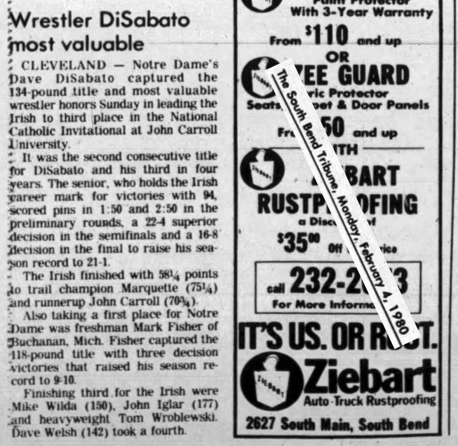 Dave DiSabato (UND) > Joe Watson (JCU) major decision 16-8