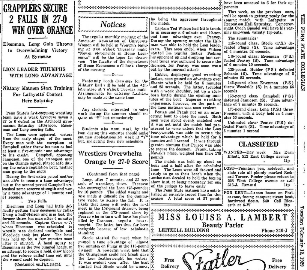 Paul Long (PSU) > Bill Freeman (SU) fall 7:35