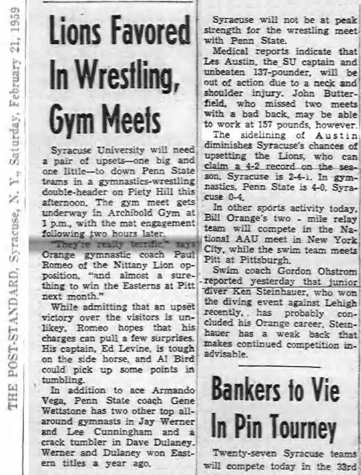 Hank Barone (PSU) > Harry Pollack (SU) fall 7:30