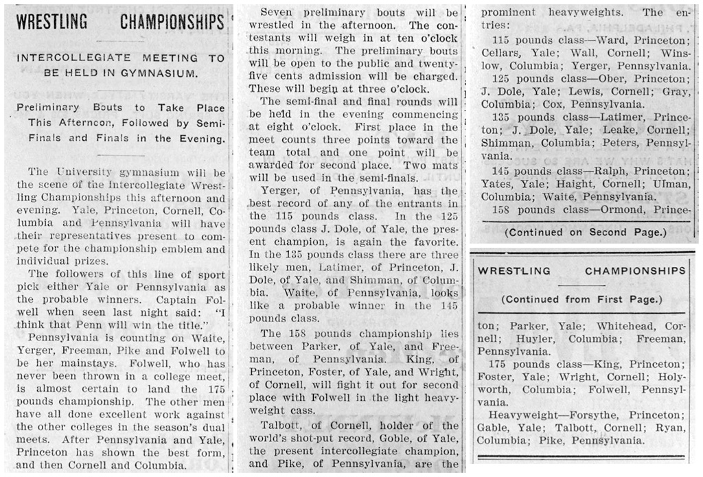 George Dole (YU) > R.L. Lewis (CU) fall 1:52