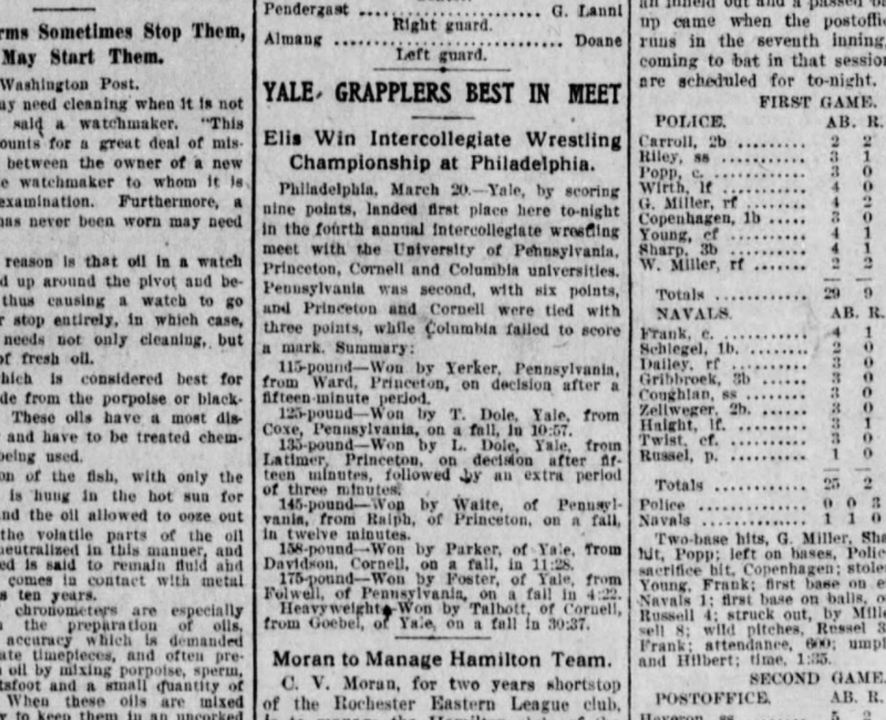 Clarence Parker (YU) > A.H. Ormond (PU) fall 4:37
