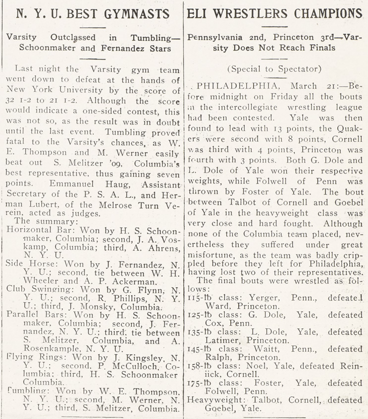 George Dole (YU) > Charles Cox (UP) fall 1:45