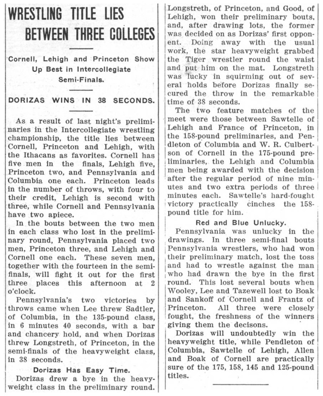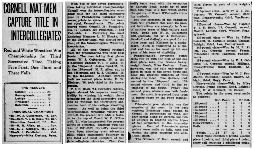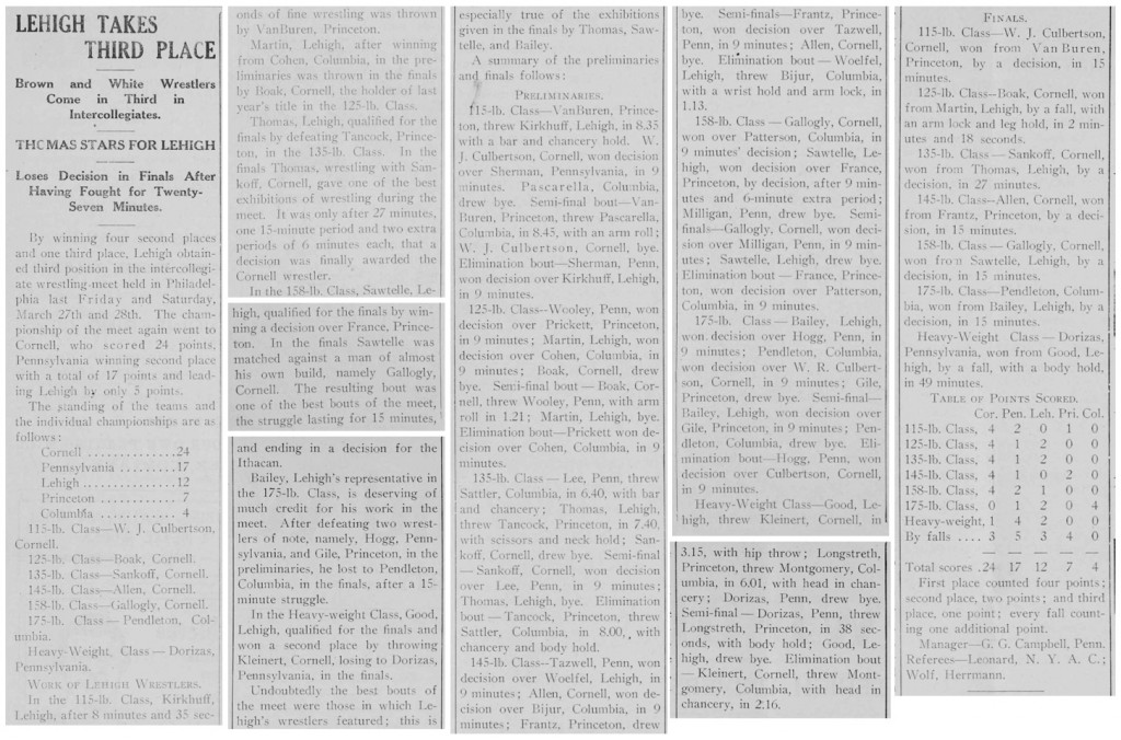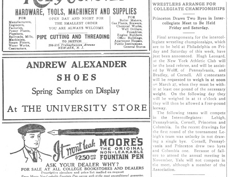 Cornell University [NY] 24, University of Pennsylvania [PA] 17, Lehigh University [PA] 12, Princeton University [NJ] 7, Columbia University [NY] 4