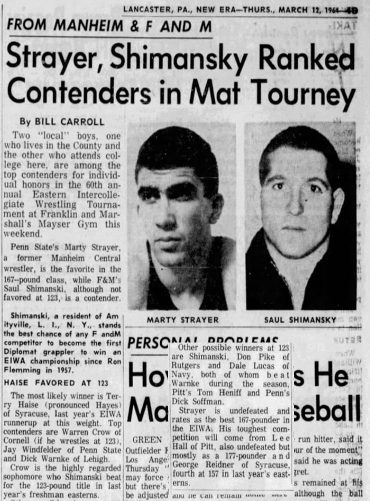 Marty Strayer (PSU) > Lee Hall (UP) decision 3-0