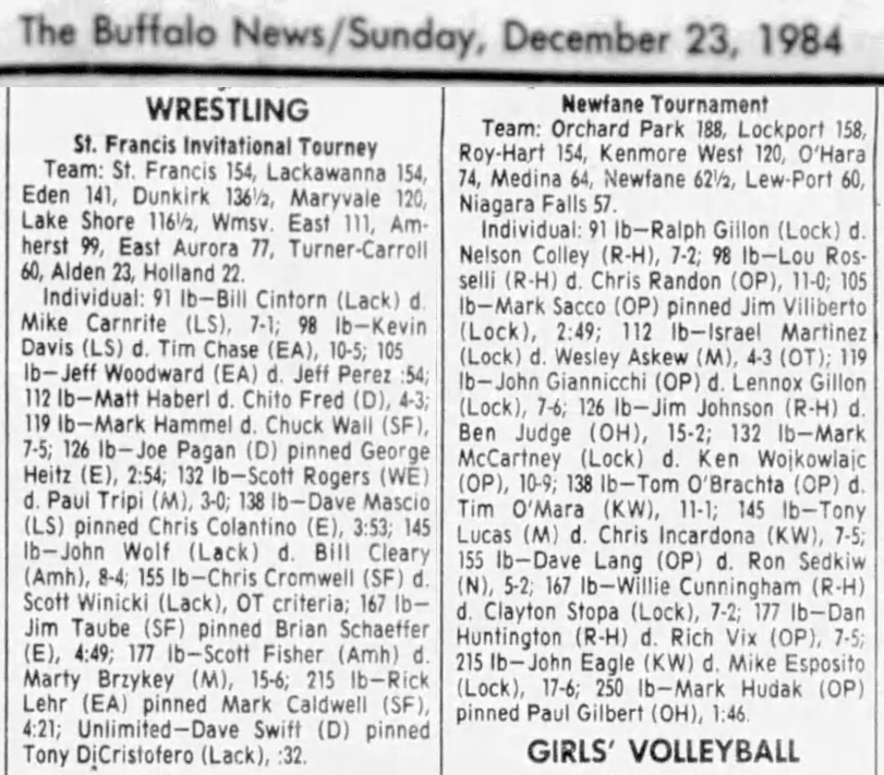 Joe Pagan (Dunkirk) > George Heitz (Eden) fall 2:54