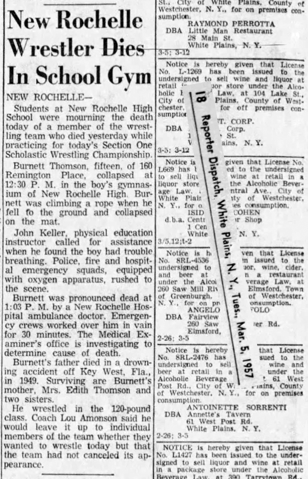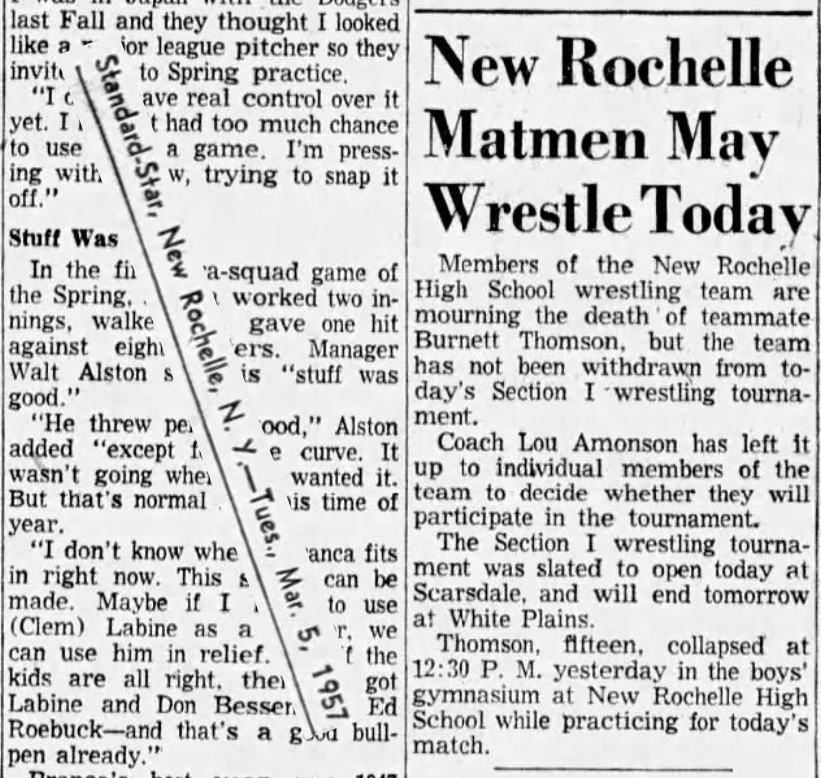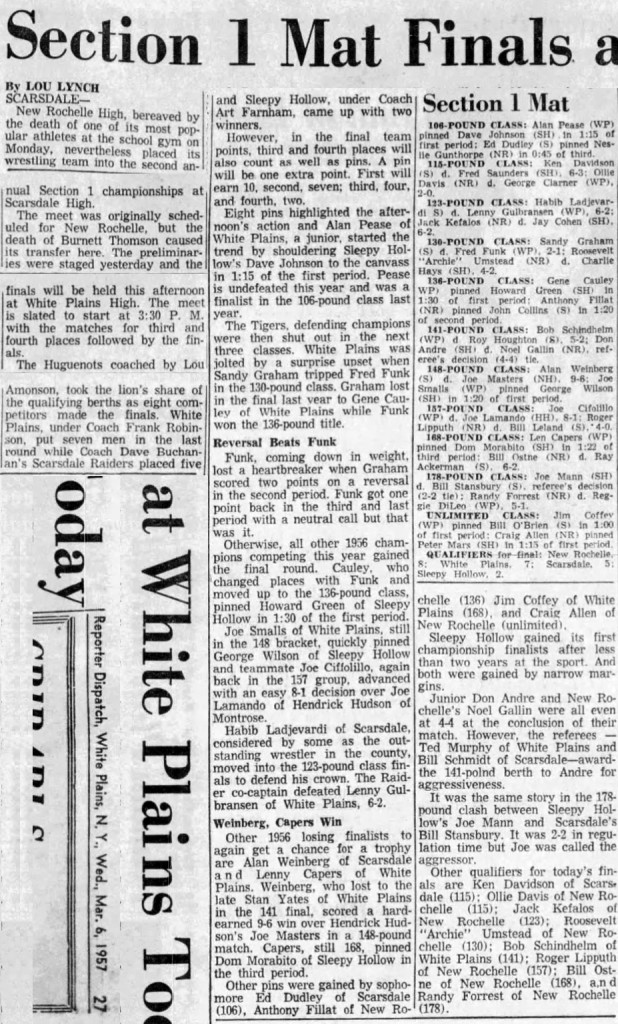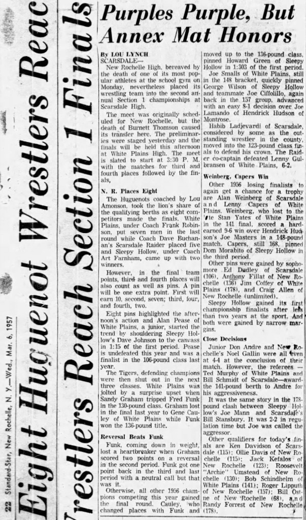 Joe Smalls (WP) > Alan Weinberg (Scarsdale) fall 5:15