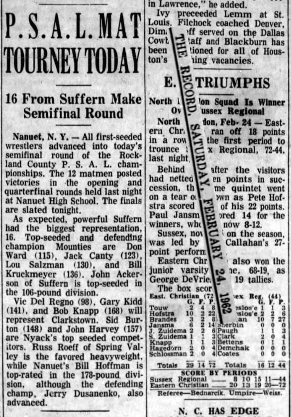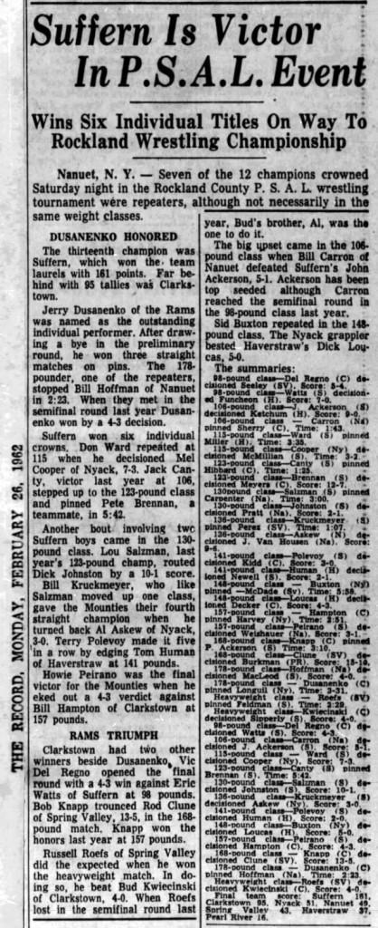 Sid Buxton (Nyack) > Dick Loucas (Haverstraw) decision 5-0