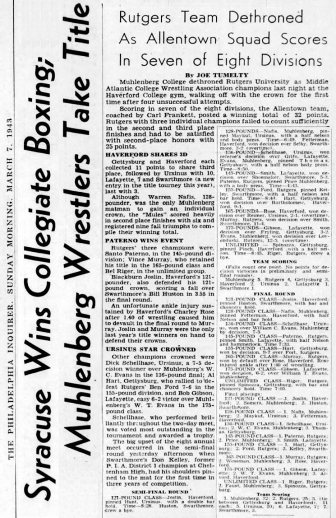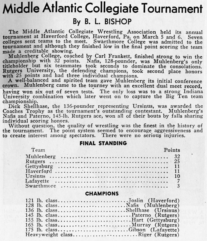 Muhlenberg College [PA] 32, Rutgers University [NJ] 25, Gettysburg College [PA] 11, Haverford College [PA] 11, Ursinus College [PA] 10, Lafayette College [PA] 7, Swarthmore College [PA] 3