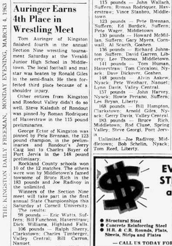 Joseph Radivoy (Middletown) > Bob Schelin (Nyack) fall 3:04