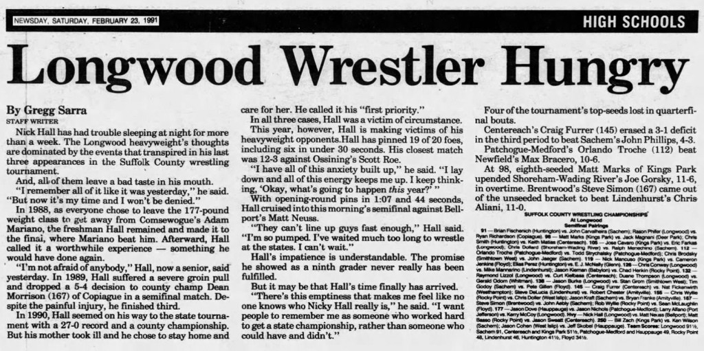 Chris Doller (WI) > Brett Lassen (Connetquot) forfeit