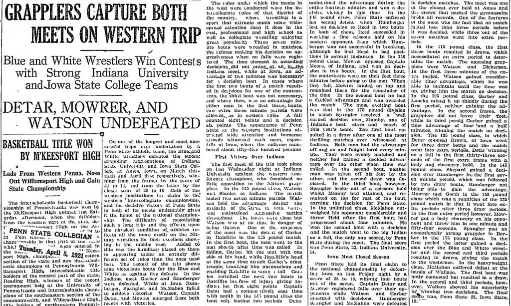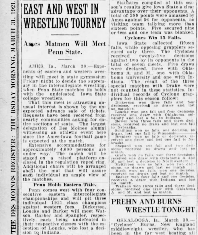 Clifton Elmer Mowrer (PSU) > A. H. Groth (ISU) fall (1OT)