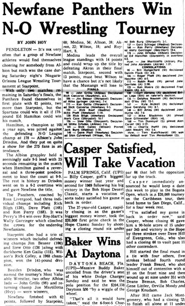Roger Platt (Newfane) > Jim Heschke (Medina) decision 6-5