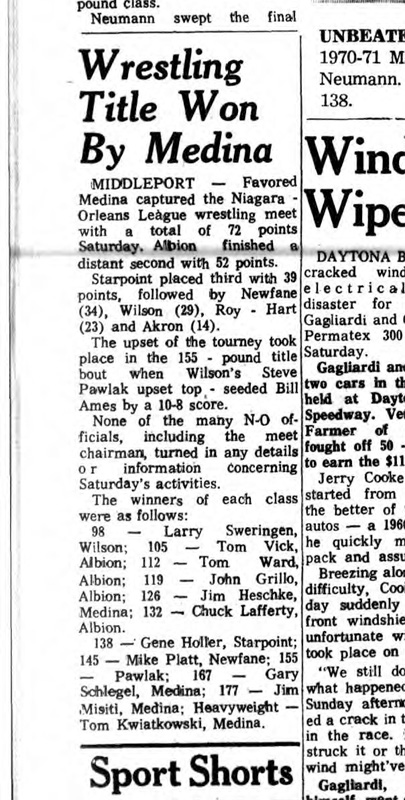 Mike Platt (Newfane) > Nathan Knight (Medina) decision 13-6