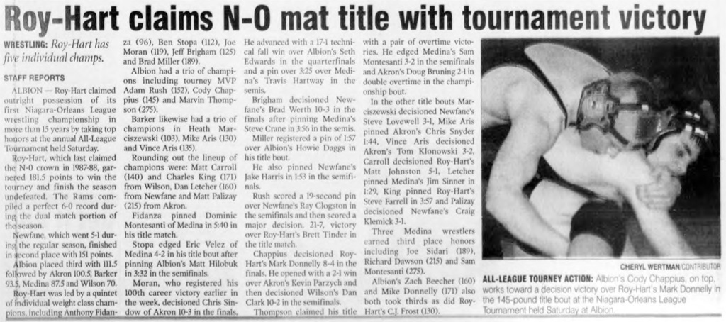 Matt Palizay (Akron) > Craig Klemick (Newfane) decision 3-1