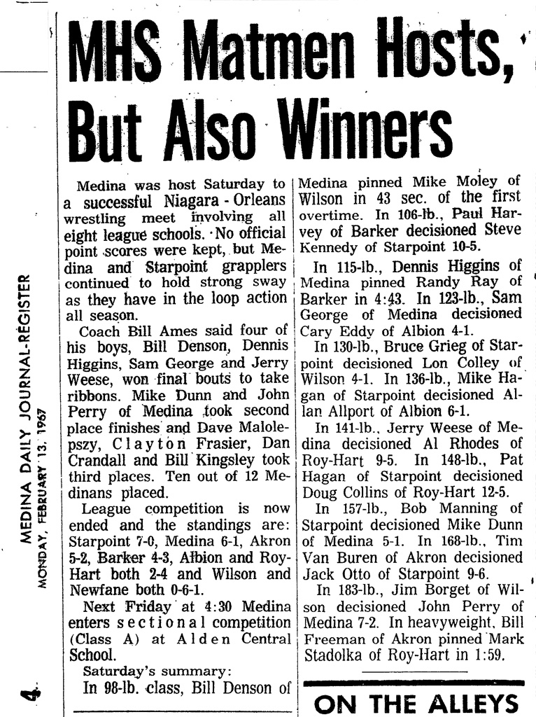 Bill Denson (Medina) > Mike Moley (Wilson) fall 6:43