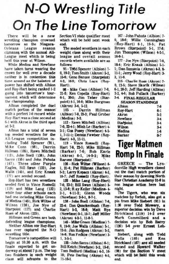 Rawn Mitchell (Albion) > Gus Posey (Newfane) superior decision 13-1