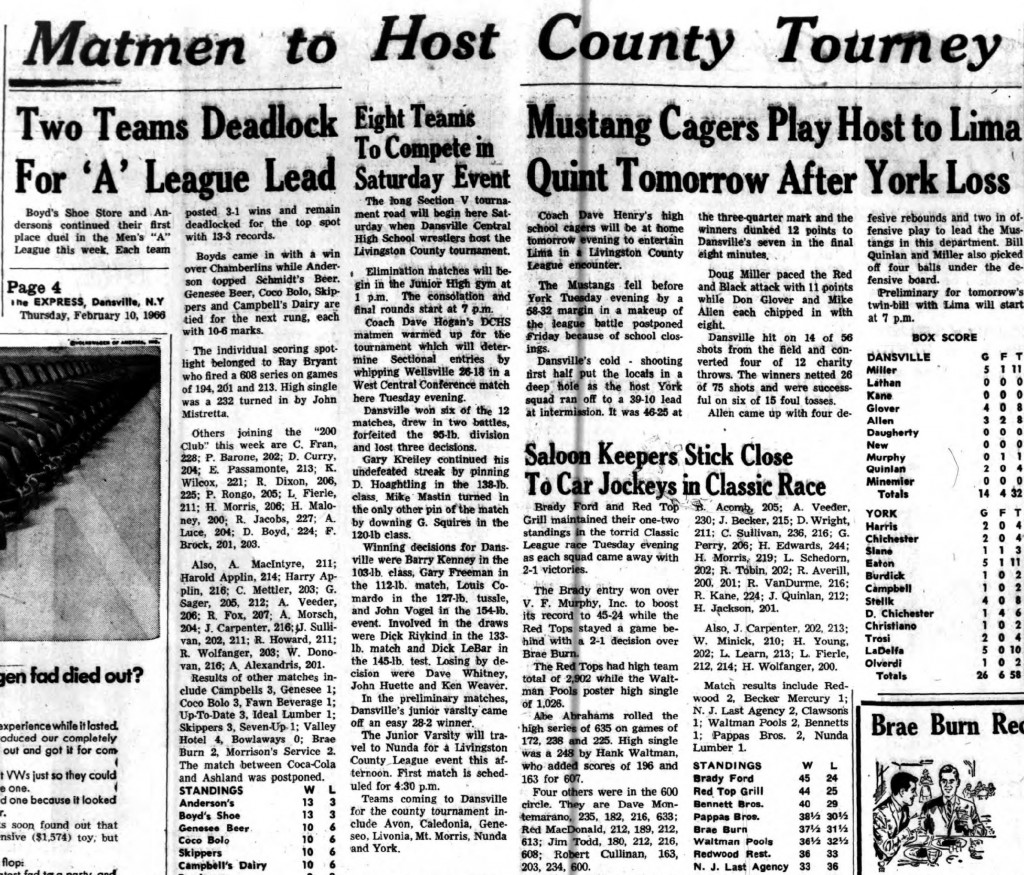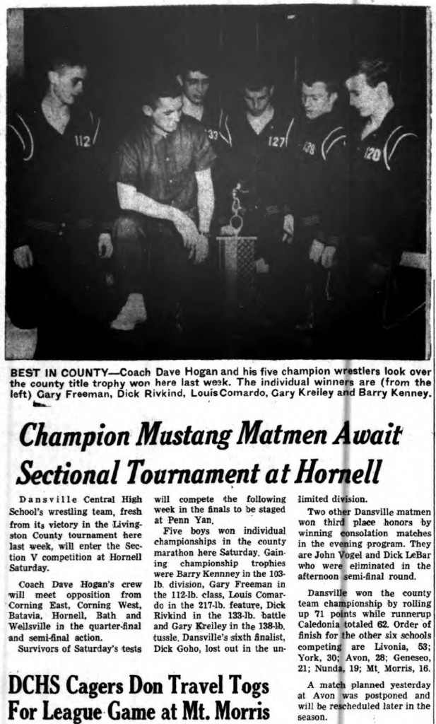 Dansville [NY] 71, Caledonia-Mumford [NY] 62, Livonia [NY] 53, York [NY] 30, Avon [NY] 28, Geneseo [NY] 21, Keshequa [NY] 19, Mt. Morris [NY] 16