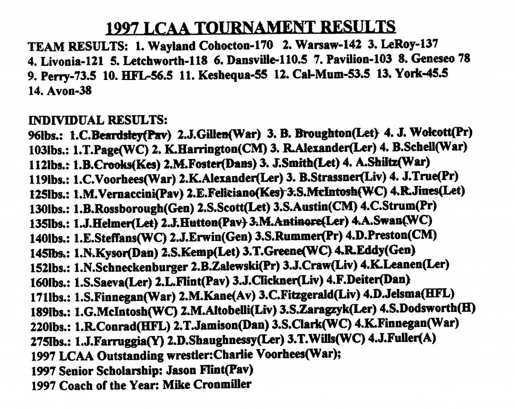Wayland-Cohocton [NY] 170, Warsaw [NY] 142, Le Roy [NY] 137, Livonia [NY] 121, Letchworth [NY] 115, Dansville [NY] 110.5, Pavilion [NY] 103, Geneseo [NY] 78, Perry [NY] 73.5, Honeoye Falls-Lima [NY] 56.5, Keshequa [NY] 55, Caledonia-Mumford [NY] 53.5, York [NY] 45.5, Avon [NY] 38