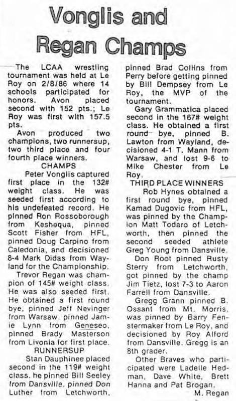 Rob Hynes (Avon) > Greg Young (Dansville) fall