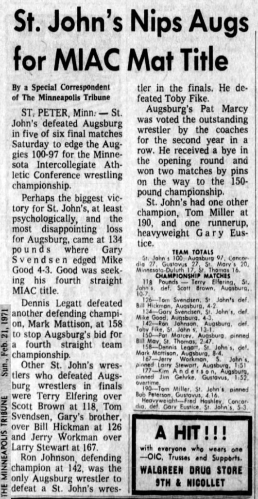 190 Tom Miller (SJU) > Bob Peterson (GAC) fall 4:16