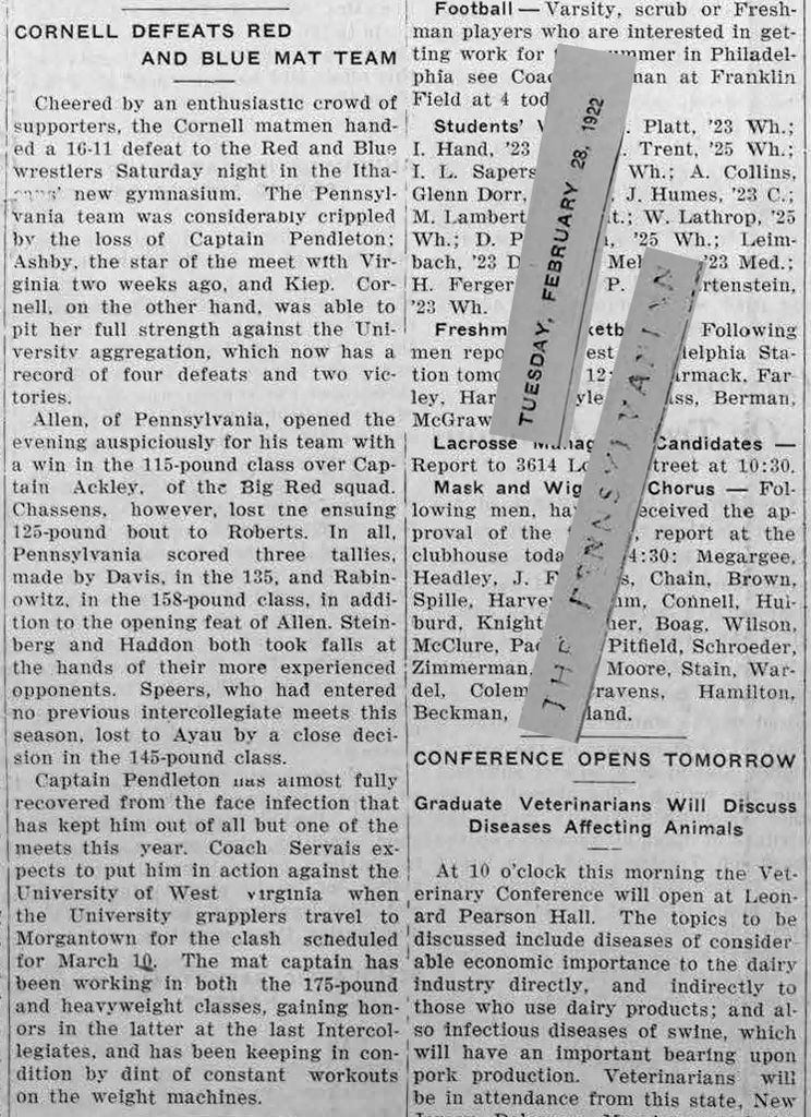 Cornell University vs. University of Pennsylvania [PA]