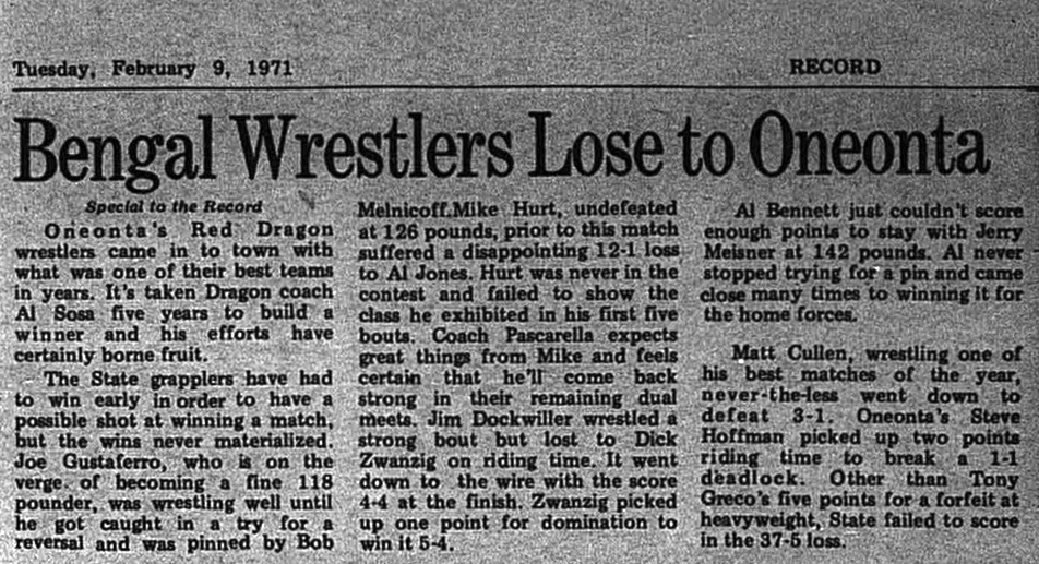 Jim Melnicoff (Oneonta) > Joe Gustaferro (BSC) fall 5:15