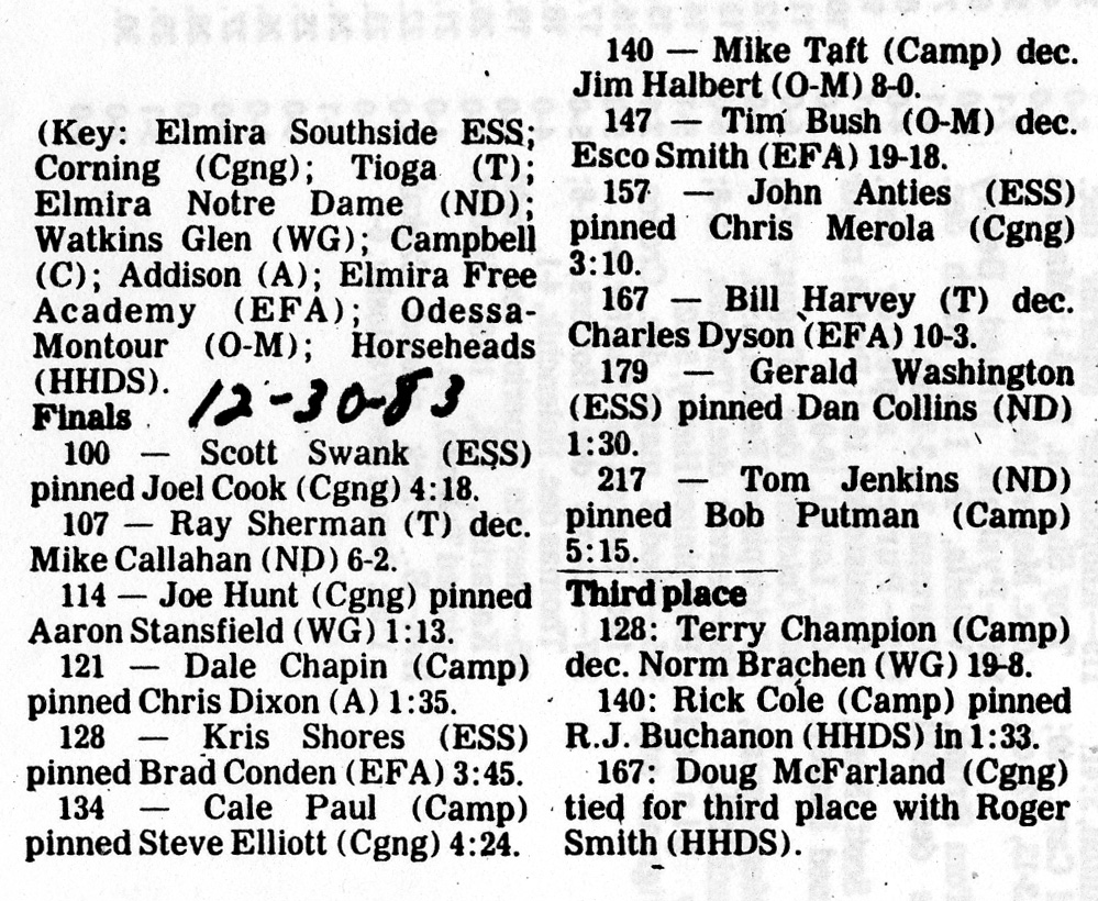 Scott Swank (ES) > Joe Cook (Corning) fall 4:18