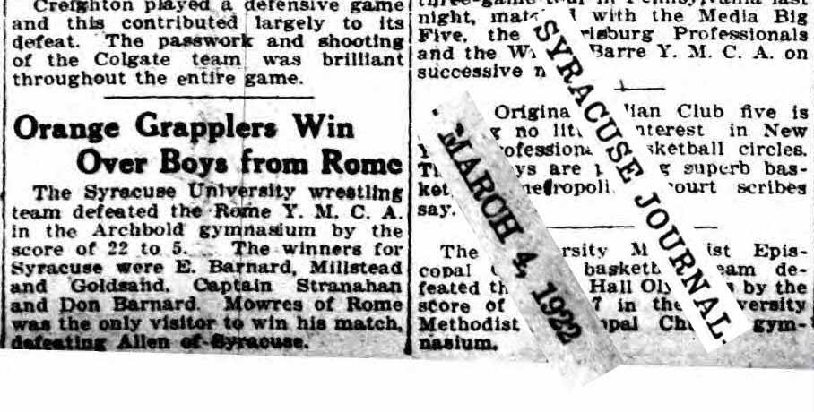 Donald Stranahan (SU) > George Whittman (RYMCA) fall 2:12