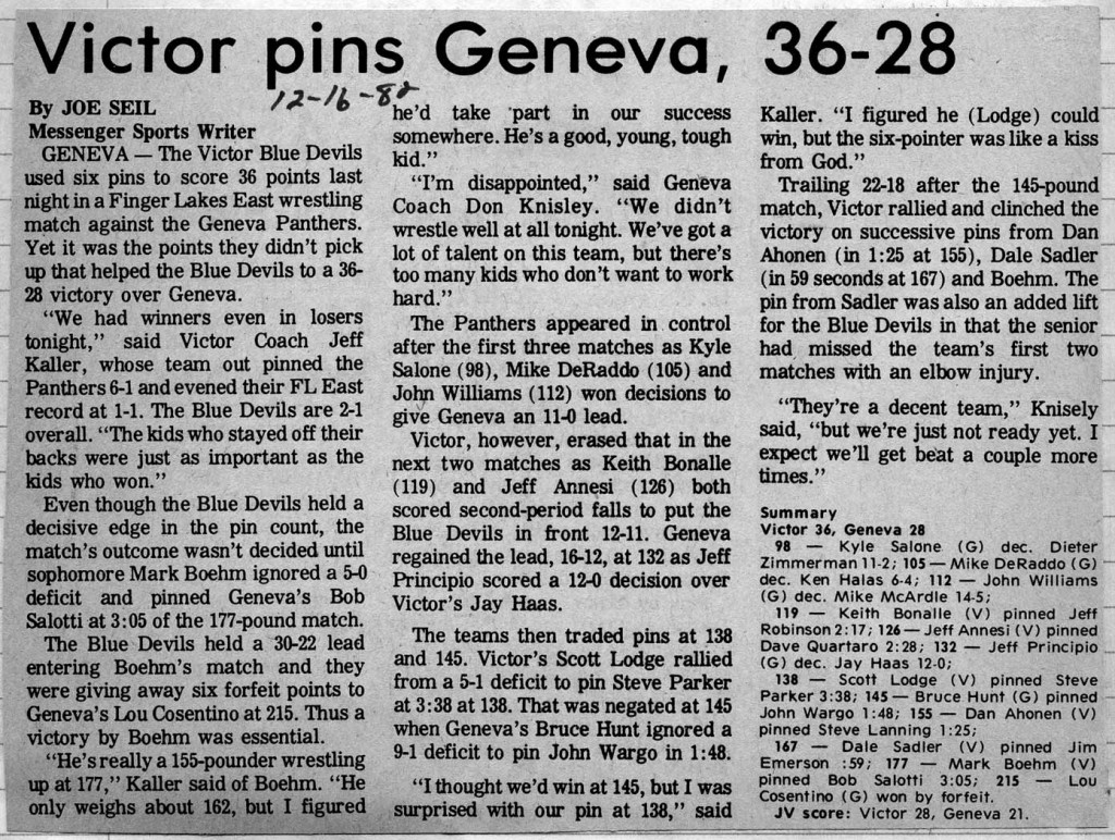Mike DeRaddo (Geneva) > Ken Halas (Victor) decision 6-4