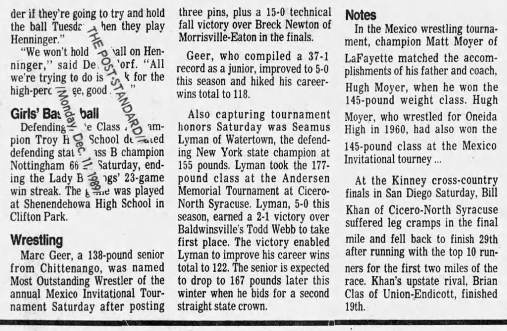 Marc Geer (Chittenango) > Breck Newton (ME) technical fall 15-0