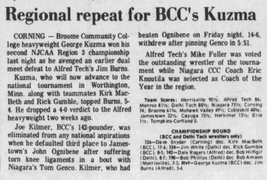Al Barber (MCC) > Pete Moore (Cobleskill)