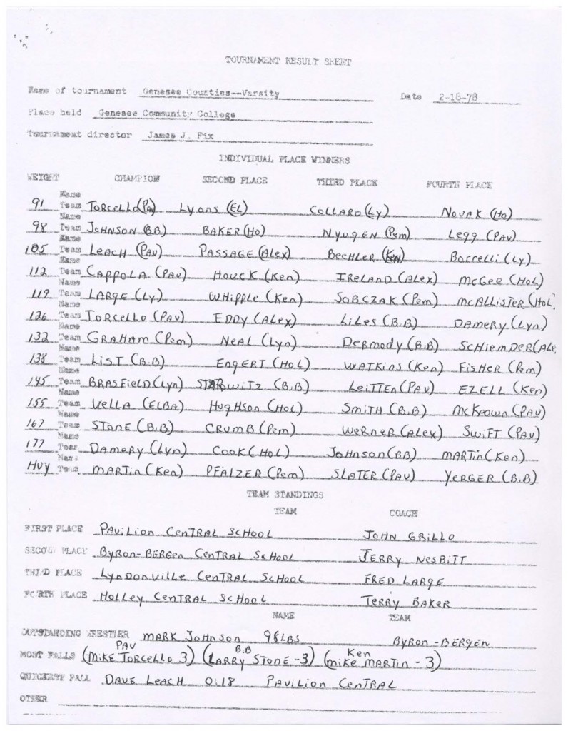 Ron Large (Lyndonville) > Mike Whipple (Kendall) decision 7-3