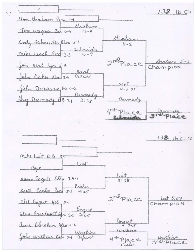Randy Brasfield (Lyndonville) > Mike Starowitz (BB) decision 2-0