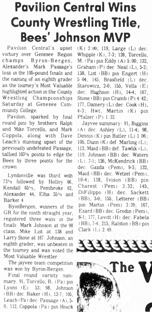 Mike Torcello (Pavilion) > Todd Eddy (Alexander) fall 5:00