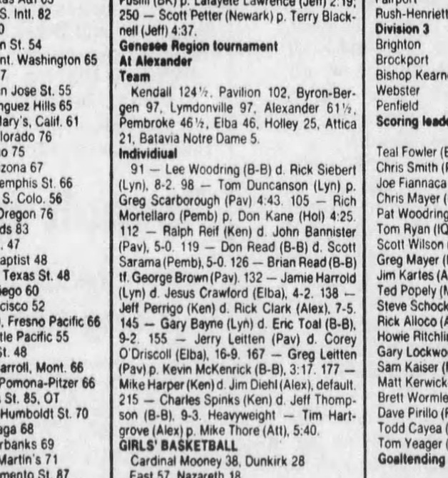 98 Don Duncanson (Lyndonville) > Greg Scarborough (Pavilion) technical fall 4:43 17-1