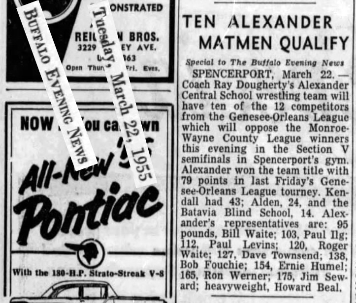 Alexander [NY] 77, Kendall [NY] 43, Alden [NY] 25, NYS School for the Blind [NY] 14
