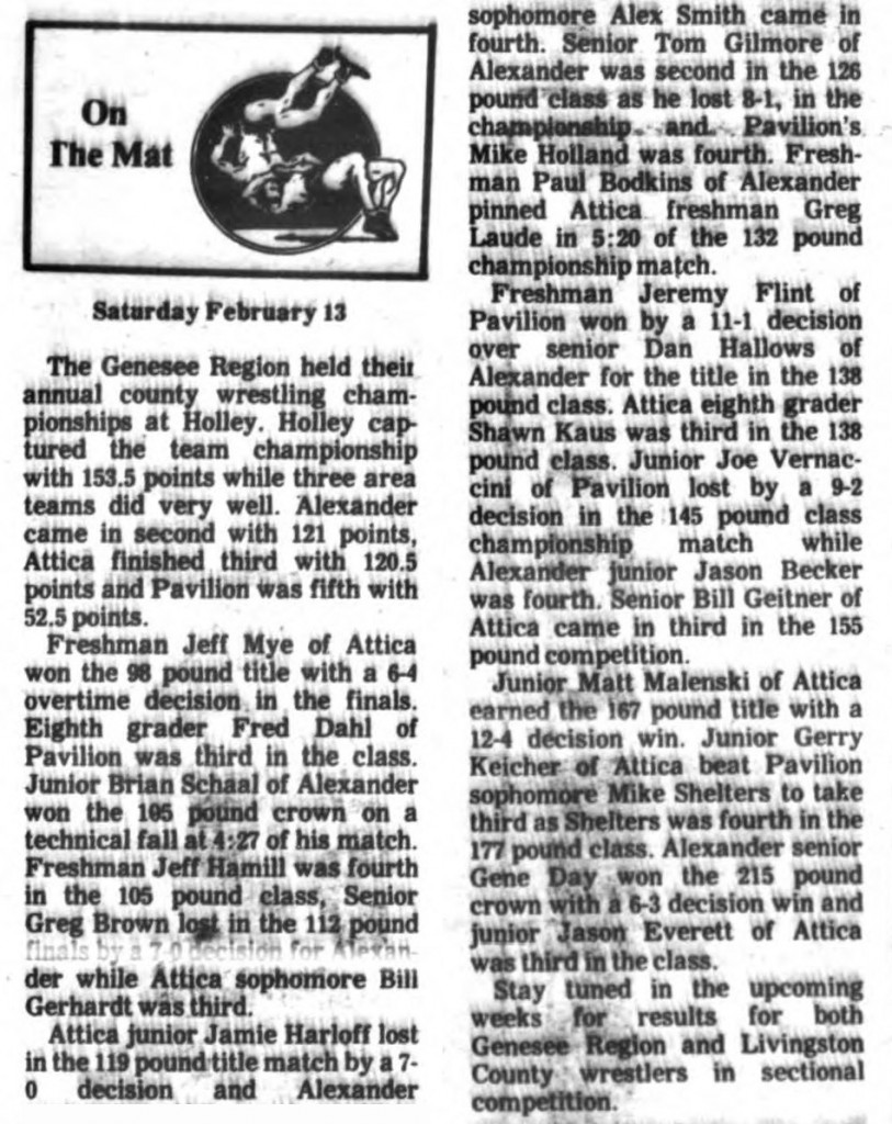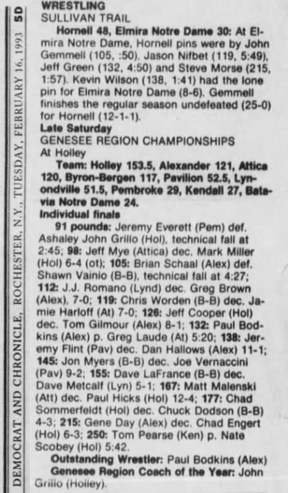 Mark Nenni (Holley) > Jeff Hamill (Attica) fall 2:37