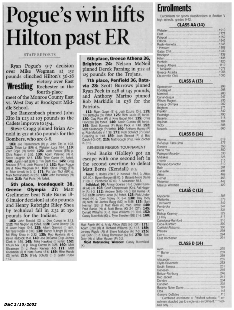 Ben Doty (Holley) > Mike Maurer (Pembroke) decision 3-2