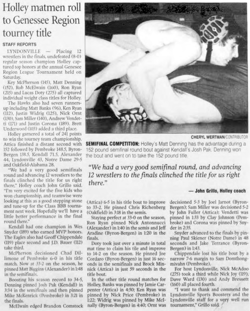Matt Denning (Holley) > Michael McKenrick (Pembroke) fall 3:21