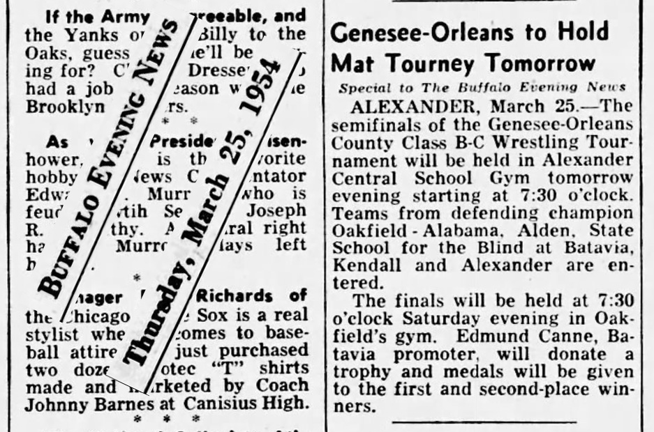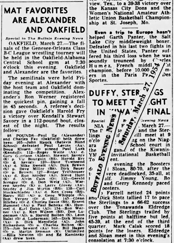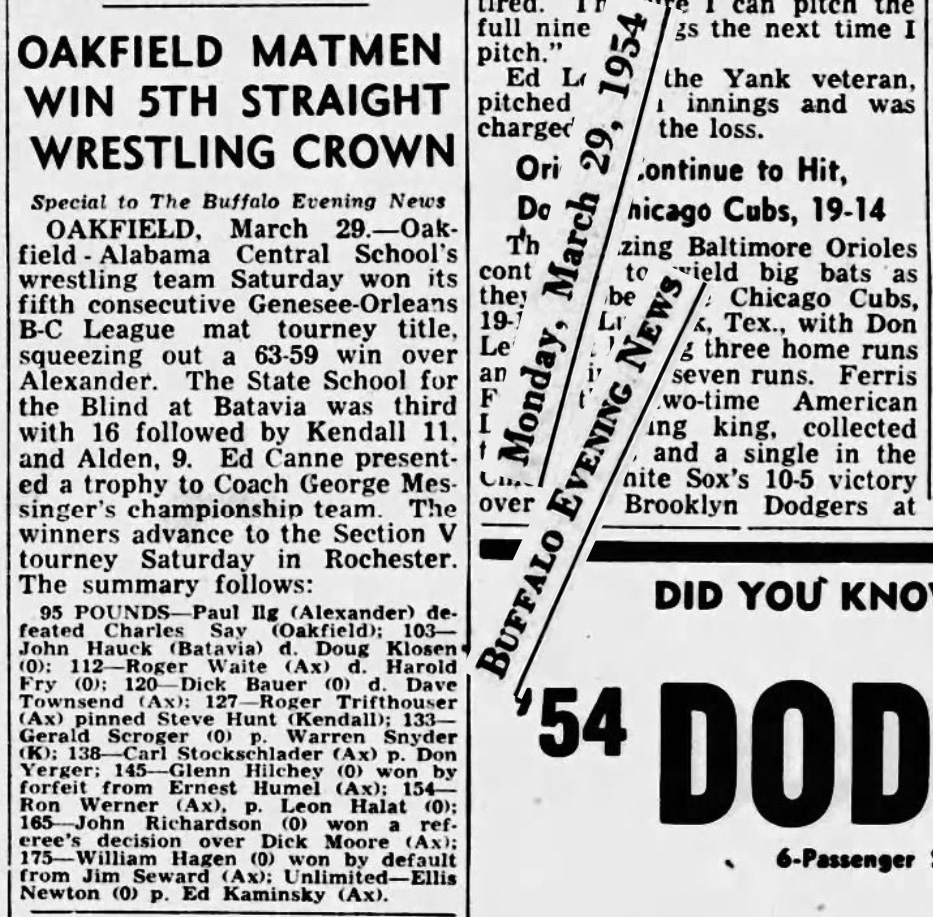 Oakfield-Alabama [NY] 63, Alexander [NY] 59, NYS School for the Blind [NY] 16, Kendall [NY] 11, Alden [NY] 9
