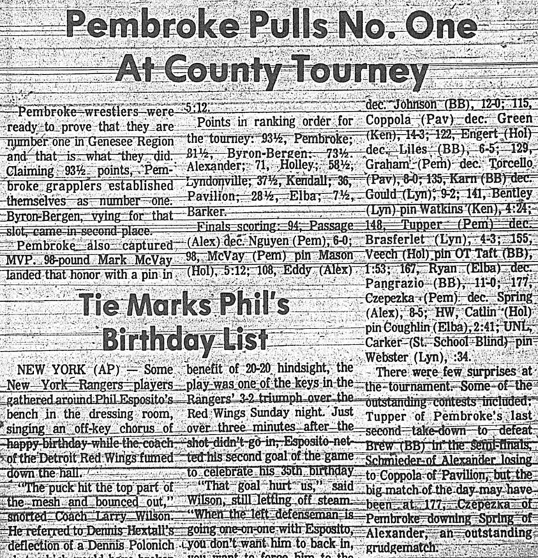 Pembroke [NY] 81.5, Byron-Bergen [NY] 73.5, Alexander [NY] 71, Holley [NY] 58.5, Lyndonville [NY] 37.5, Kendall [NY] 36, Pavilion [NY] 28.5, Elba [NY] 7.5,