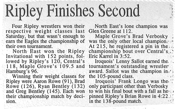 Frank Longo (Iroquois) > Brian Rowe (Ripley) fall 4:22