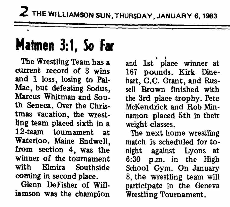 Kim Doane (Wellsville) > Bob Wilmot (Oswego) decision 13-6