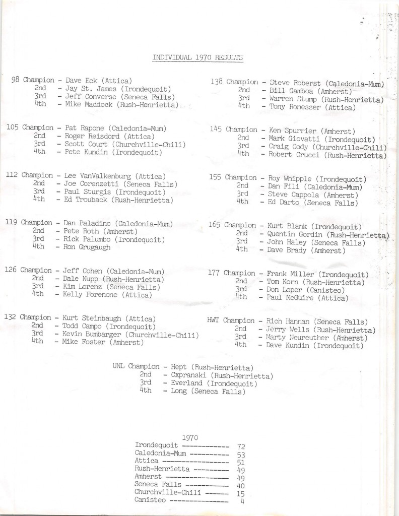 Irondequoit [NY] 72, Caledonia-Mumford [NY] 53, Attica [NY] 51, Amherst [NY] 49, Rush-Henrietta [NY] 49, Mynderse [NY] 40, Churchville-Chili [NY] 15, Canisteo [NY] 4